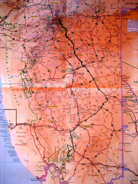 Da wir die Strecke über Grünau schon kennen, fahren wir den direkten Weg. Bei der Einfahrt in den Gondwana Park springt unser Kilometerzähler auf die 1000km um. Wahnsinn wir sind jetzt schon 1000km gefahren und das Beste, noch nicht einmal getankt (naja wir haben ja auch einen Doppeltank im Auto)