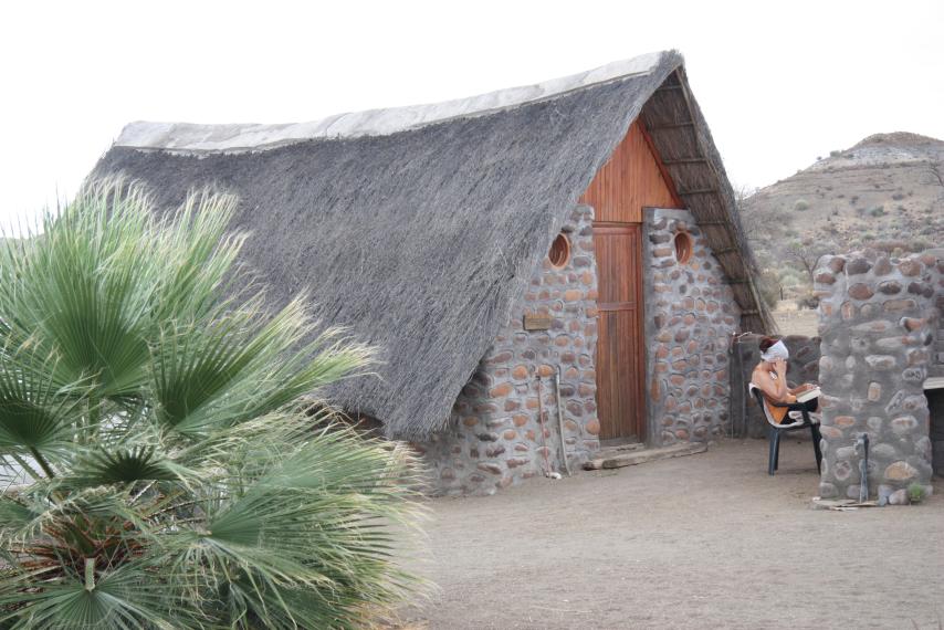 Bungalow, sogar mit einer Doppelbadewanne (verrückt mitten in der Wüste).