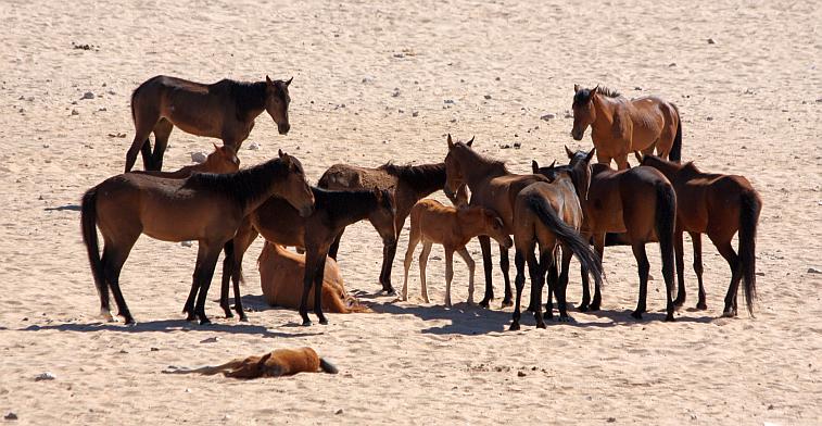 Nach dem Frühstück fahren wir zu den wilden Pferde der Namib. Da es eine Tränke für die Pferde gibt, ist die Wahrscheinlichkeit welche anzutreffen sehr hoch.