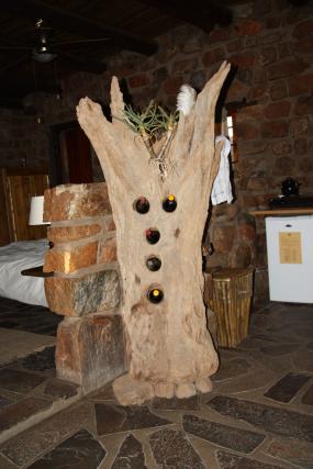 Auf dem Rückweg laden wir unseren Weidekorb mit lecker Essen ein. Der Wein zum Essen steht schon in unserer Unterkunft in einem sehr originellen Weinregal. |